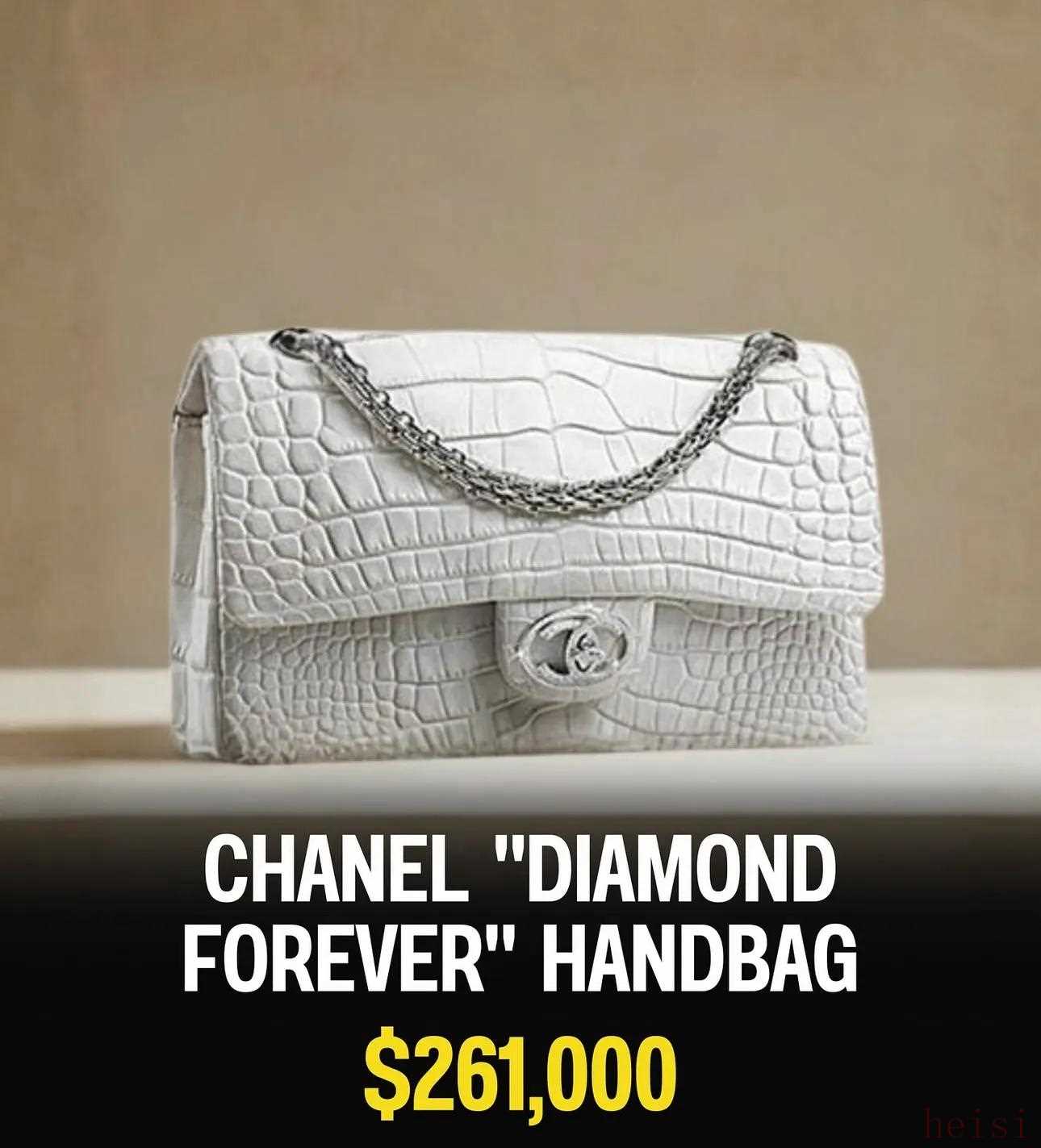 7. Chanel “钻石永恒”手袋 ($261,000)这款香奈儿经典款手袋采用了白色鳄鱼皮,并将品牌标志性的CC Logo和链带部分用白金和钻石点缀,稀有性和经典款的结合使其价值极高。