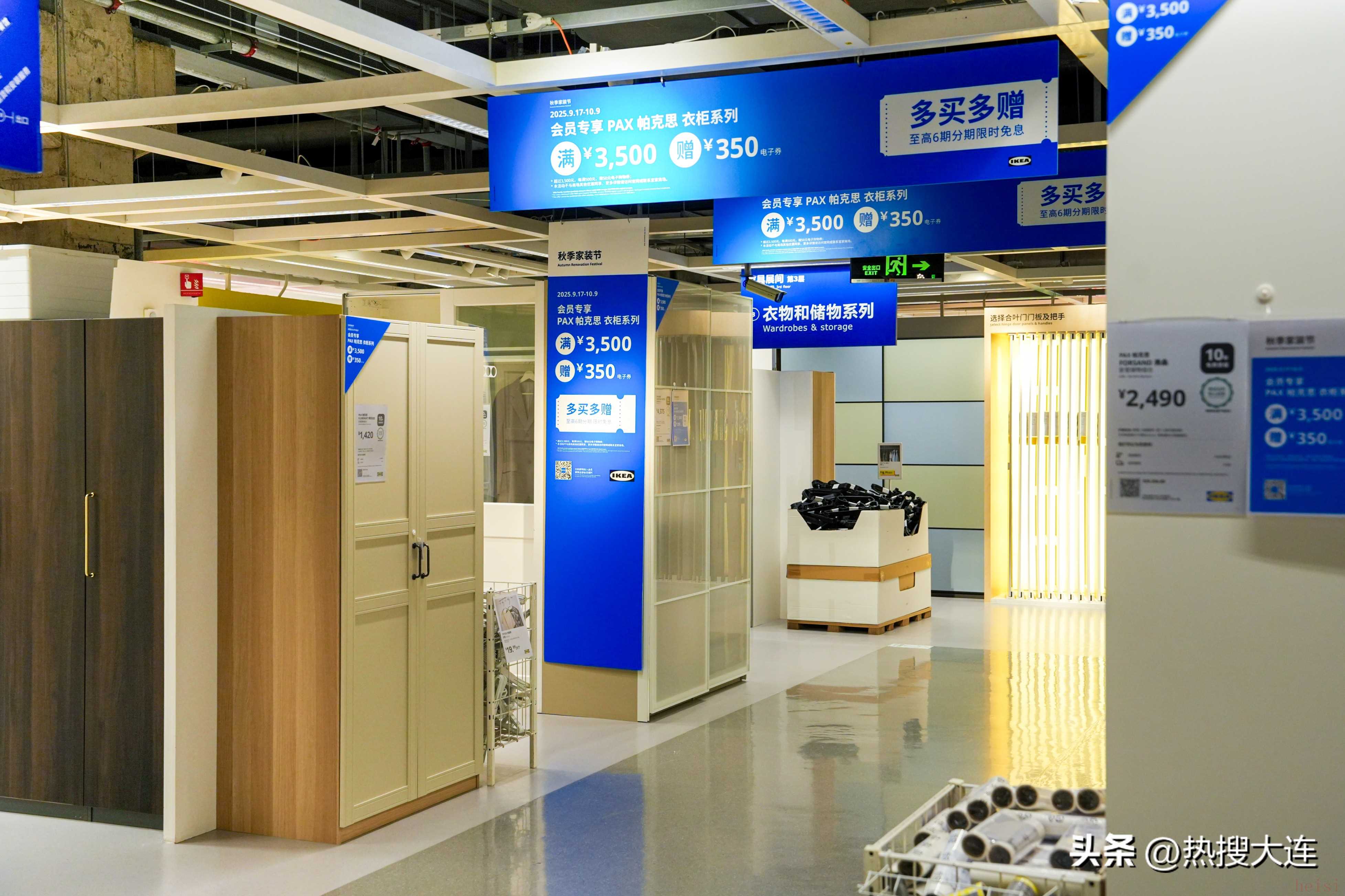 新财年,宜家在提供优质产品之余,也致力于为消费者提供全方位的优质购物体验和更丰富多彩的商业活动。从9月17日起,宜家大连商场推出秋季家装节活动:1,宜家会员购买宜家PAX衣柜系列单笔订单满3,500元,即可获赠350元电子购物券;每超出500元,可额外获赠50元电子购物券。多买多得,上不封顶。2,宜家会员购买完整厨房及厨房电器产品单笔实付满10,000元,即可获赠 1,000元电子购物券;实付超过10,000元,每满5,000元,即可额外获赠500元电子购物券,多买多得。3,宜家会员购买瑞典风味餐厅食品单笔实付满120元,即可获赠 20元电子购物券。4,2025.9.30-2025.10.9 宜家将举办” 国庆欢乐GO, 会员嘉年华” 活动,