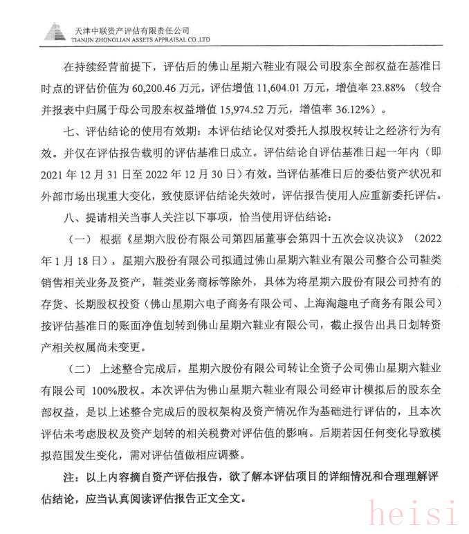 6月27日晚间,星期六公告称,拟在广东股权交易中心股份有限公司以挂牌方式转让持有的子公司星期六鞋业100%股权。首次挂牌转让底价不低于6.02亿元,评估增值率23.88%,对应转让款支付期限不超过12个月。