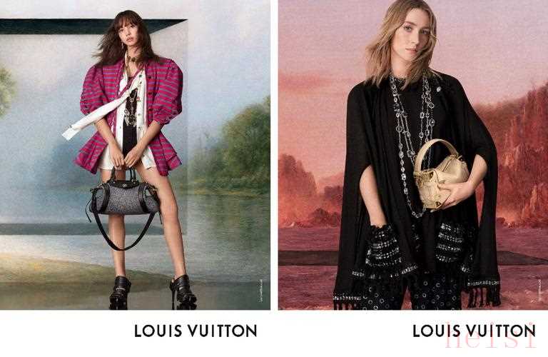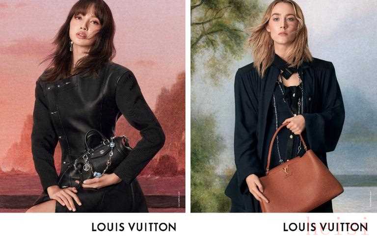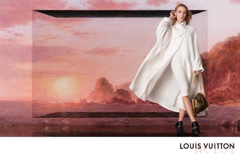 此次广告特辑由Steven Meisel掌镜,依循了路易威登女装艺术总监Nicolas Ghesquière在2025春夏女装系列中展现的创作理念。该系列从Grasso超脱尘俗的风景画汲取素材,运用了漂浮的球体和燃烧的火把两种重要元素,以三款精心打造的造型圆满收尾。此次广告特辑再次融入这位艺术家的系列画作《研究过去》(Studies into the Past) 中的三幅新作,以又一大超现实主义意象:黑色矩形,象征重塑纯净原始自然的边界。同时,以这些艺术作品为背景,Lisa与Saoirse Ronan在镜头前散发出一种自信的温暖。