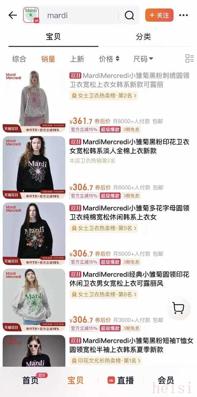 上海写字楼里,两位新同事的相遇,因胸前并排的四只眼睛而变得奇妙。两只属于人,另外两只来自一条印在T恤上的腊肠犬。这条狗,是韩国潮牌Mardi Mercredi的标志。这个以小雏菊和腊肠犬闻名的品牌,在进入中国市场的短短两年内,就撬动了近六亿元的营收。它的天猫旗舰店里,几款基础卫衣与T恤的累计销量逼近二十万件,而在拼团平台上,仿款与同款的销量数字更是飙升至两百万件。