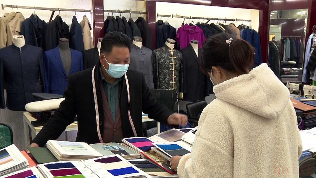 除了假领,全泰的骆驼毛棉袄棉裤也受到了老年朋友的喜爱。一位急匆匆赶来的市民告诉记者,今天特地到这里来就是为了替家里的老人买骆驼毛的棉裤。买年纪大人穿的裤子,家里老人鸭绒裤不要,因为穿着凸出来的,不舒服。裤脚管大的老人也不喜欢,今天到这里来看到这条裤子蛮适合的 ,裤脚管小小的。这个的棉裤适合老年人,尺寸蛮好的,价格也不贵。其实全泰的棉裤还有一个特点就是裆长,如今市面上的裤子一般是九寸,而这里的是一尺二到一尺三,所以年纪大的穿着特别舒服,而且门襟采用一排钮扣,老年人用拉链不是很方便的。