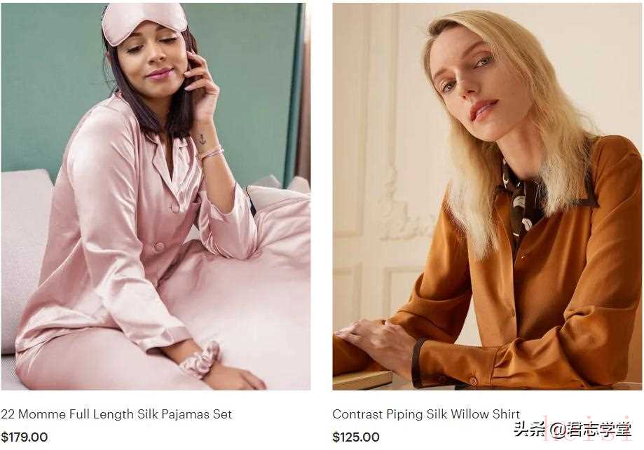 6、避开“红海”,聚焦细分市场Lilysilk巧妙避开了已经被Zara、SHEIN、Zaful等快时尚巨头所占据的大类目“红海”,瞄准了服饰类目下的细分子类目——丝制品。而在品牌定位上,Lilysik的定位是轻奢路线,聚焦于35-54岁之间受过良好教育的中高收入女性。这类用户往往消费能力强、消费审美高,对于价格介于50-200美元之间的Lilysik产品,有着较高的接受能力与消费能力。