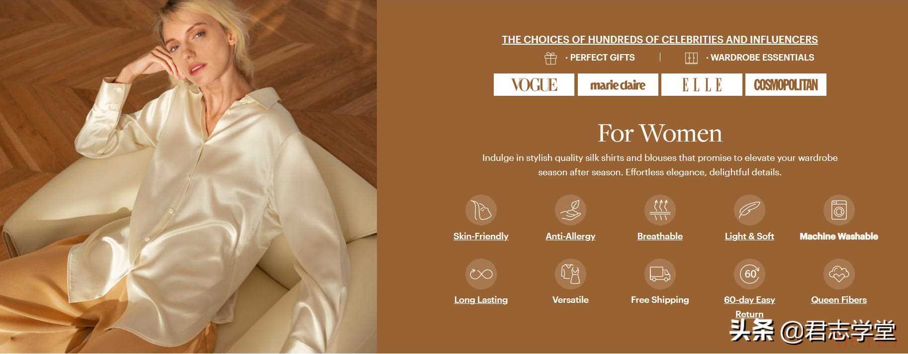 Lilysilk,也许很多中国消费者对这个品牌并不熟悉,但事实上聚焦于海外市场超十年的Lilysilk在国外颇具知名度,很多我们熟知的时尚媒体如Marie Claire嘉人、BAZZAR芭莎、VOGUE时尚均报道过它。目前Lilysilk自建的B2C品牌电商平台销售占比已超60%,所以Lilysilk可以说是跨境电商独立站成功出海的案例之一。接下来本文将会复盘Lilysilk的成功之道,希望能为广大跨境电商从业者提供参考~如果觉得文章对你有帮助的话别忘了点赞和收藏哦~一、Lilysilk的“前世今生”在开始复盘之前,我们先来简单剖析一下Lilysilk的“前世今生”。Lilysilk品牌雏形诞生于2010年,当时,其品牌主理人Lily Lin在法国丝绸行业工作时看到某些零售商通过品牌溢价的方式实现巨额营收,但行业内的工人却仍处于相对贫困的状态。于是Lily Lin萌生了通过线上途径,以实惠的价格,将中国丝织工艺分享给全世界消费者,建立一个全球化生活方式品牌,且能带给丝绸工人实质性收益的想法。