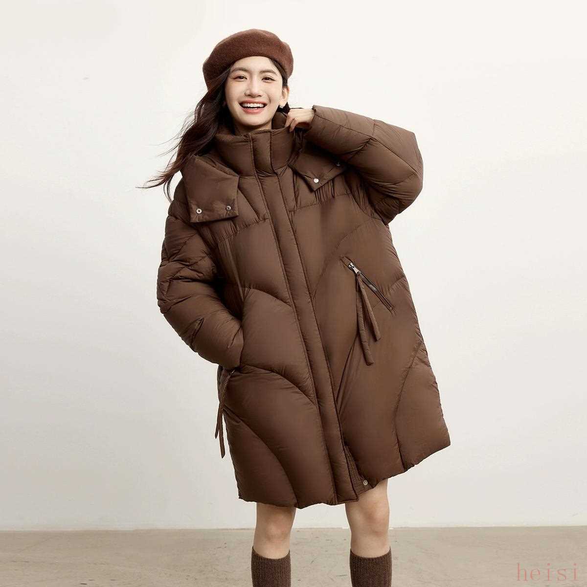 恩裳主打女装羽绒服,以简约大气的设计风格著称。整体剪裁利落流畅,注重线条感,能修饰身形曲线,避免臃肿感,适合职场女性在商务场合或日常通勤穿着。面料质感细腻且防风耐磨,部分款式还采用了暗纹提花工艺,低调中透着高级感。填充物选用高品质白鹅绒,蓬松度达600+,充绒量充足,在-10℃左右的低温下仍能保持良好的保暖效果。内里采用亲肤绒布内衬,触感柔软。