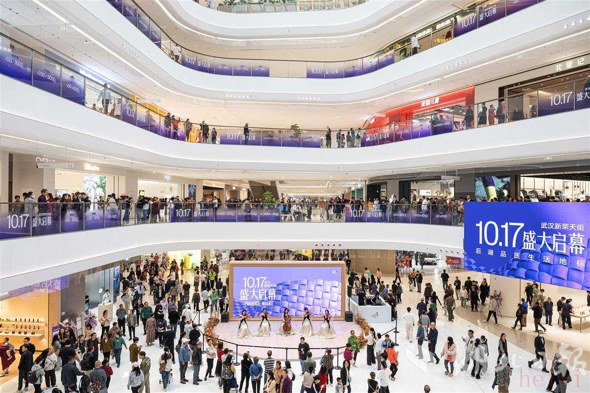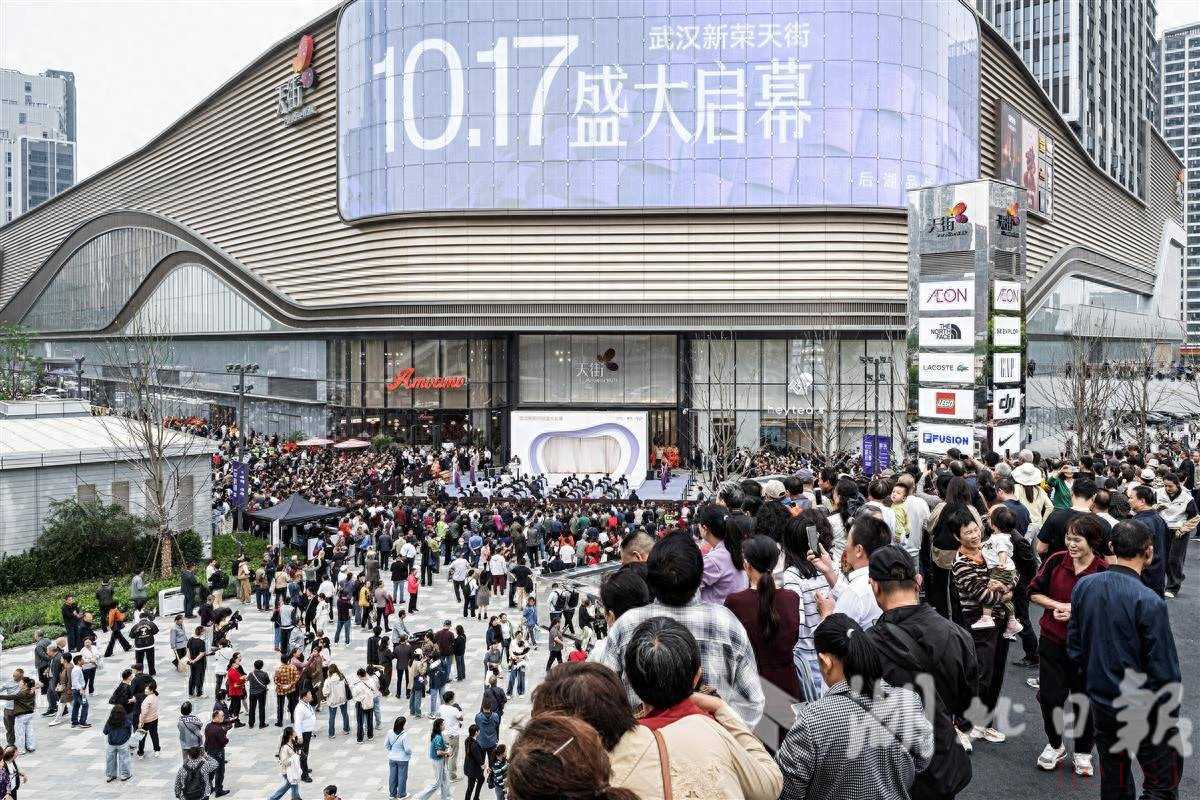 10月17日,位于后湖大道与汉黄路交汇处的武汉新荣天街正式开业。现场人头攒动,近万名周边市民闻讯前来“尝鲜”。(湖北日报全媒记者 任勇 摄)