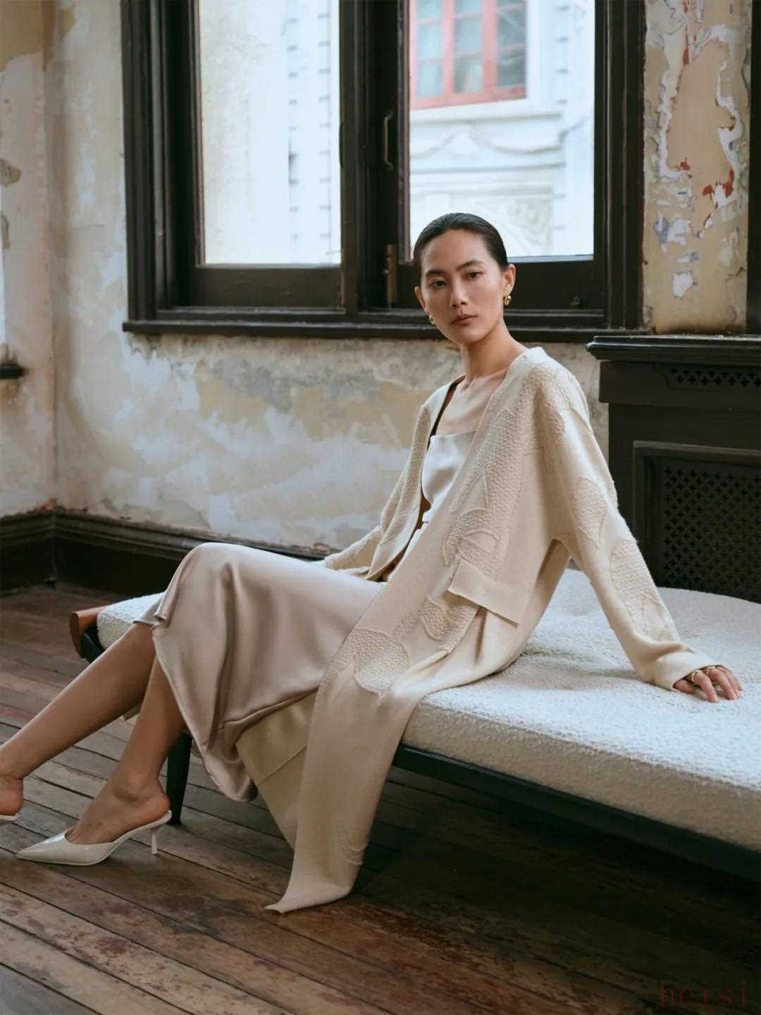 “我们的消费者画像是18至35岁的女性,她们走出校园成为Office Lady,对待生活务实且真诚,喜欢简约又高效的体验。”海维恩的产品线恰好契合《玫瑰的故事》中高知女性的性格。品牌从浩渺海洋中汲取简约灵感,于时间流转中捕捉沉淀的时尚经典,又如同海与时间一样拥抱女性消费者。海维恩将为欧洲客户带来大受好评的极简静奢、中式禅意系列,让欧美市场感受中国传统文化造就的多元审美。以精致提花、手工盘扣、刺绣花鸟云纹等经典元素,展现东方美学当代化表达中简约与时尚的精妙关系。海维恩将加入MODA CHINA视为品牌发展的重要转折点,在创作中更注重全球流行趋势与客户需求,从衣着着手提升女性自信。