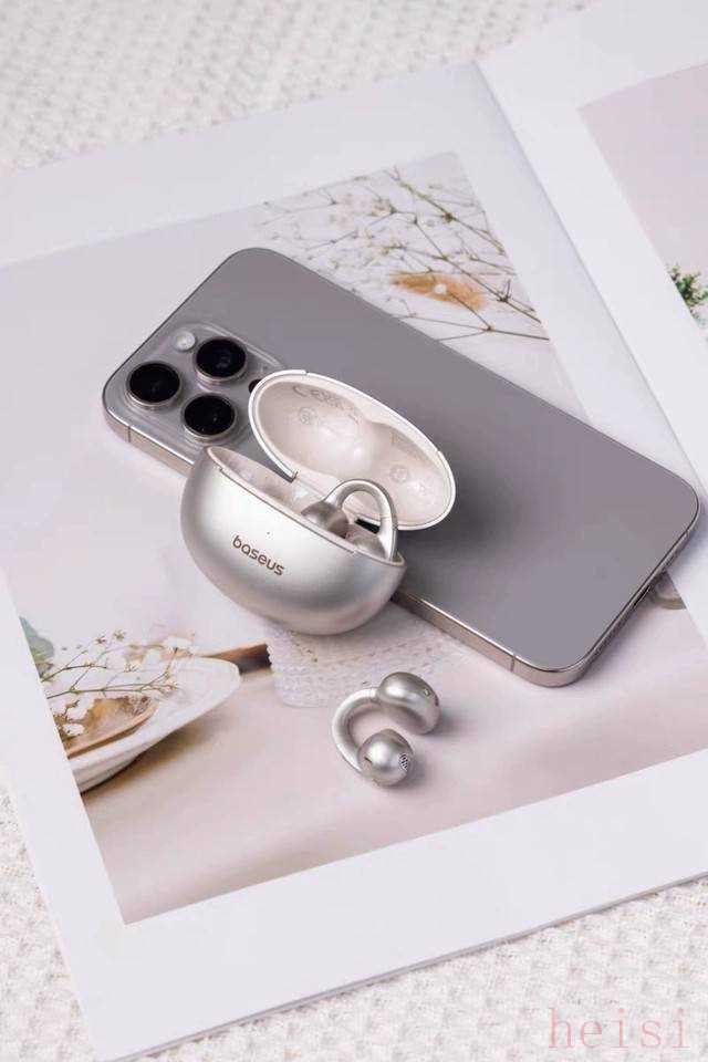 ④倍思Baseus|百元档耐用性口碑王代表型号:MC1|参考价格:159元倍思作为老牌数码配件厂商,在开放式耳机领域同样表现稳定。MC1延续其高性价比路线,整体造型轻盈简洁,耳挂采用高弹TPE包覆结构,耐汗耐用。在音质方面,MC1搭载14.2mm动圈单元,低频有力、中频饱满。即使在户外使用,音乐依旧通透不糊。防水等级达IPX5,跑步、通勤、骑行都无需担心出汗影响。倍思的产品以稳定连接和可靠做工著称,是百元价位段“实用主义”的代表。