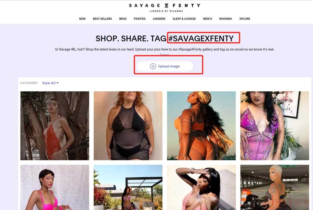 值得一提的是,他们的购买者会在Instagram上面发布使用产品的图片,为了获得SavageXFenty的内容曝光机会,他们在内容创作上,图片的拍摄设计上都投入相对的精力,这些内容成为了品牌网站上一个非常显眼的展示内容,并且也成为了社交媒体销售的重要载体之一。