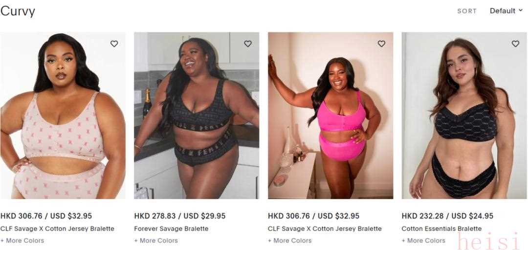 美国的平均尺码大约是在XS-XL之间,但是有三分之二的美国女性将自己归类为“特殊尺码”,即特小码或特大码,SavageXFenty的网站上的内衣尺码涵盖了XS-3XL,它通过扩大尺码来体现品牌对包容性的概念,任何身材的女性都可以在他们的网站上购买到相同或相似的产品,品牌创始人希望每一位女性都可以自信的表达自己,美无需只靠马甲线、大长腿等完美身材来定义。