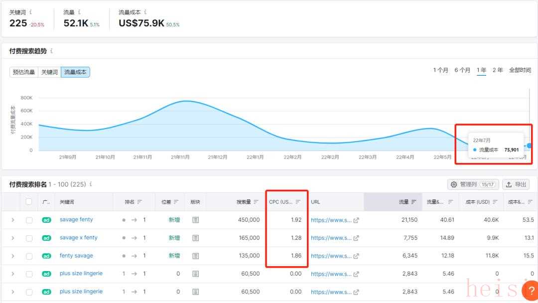 SavageX Fenty在付费关键词这块的投入并不会太高,目前投放的费用大约在5-7万美元,因此他们不会投放太具备竞争力的高成本关键词,因为他们已经在社交媒体上投资了数百万美元。