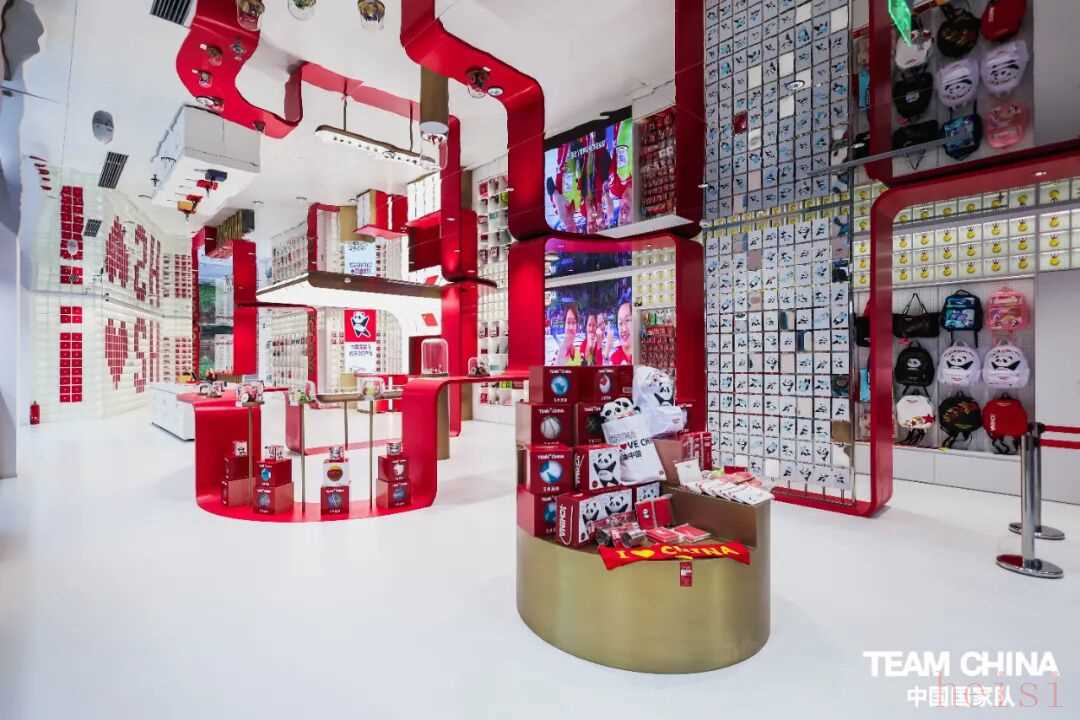 该店集中国国家队特许产品展示与销售、新品发布与宣传、互动体验功能为一体,销售徽章、钥匙扣、冰箱贴、工艺品、家居用品、户外用品、箱包及配件、玩具、文具、陶瓷等多品类中国国家队特许产品。