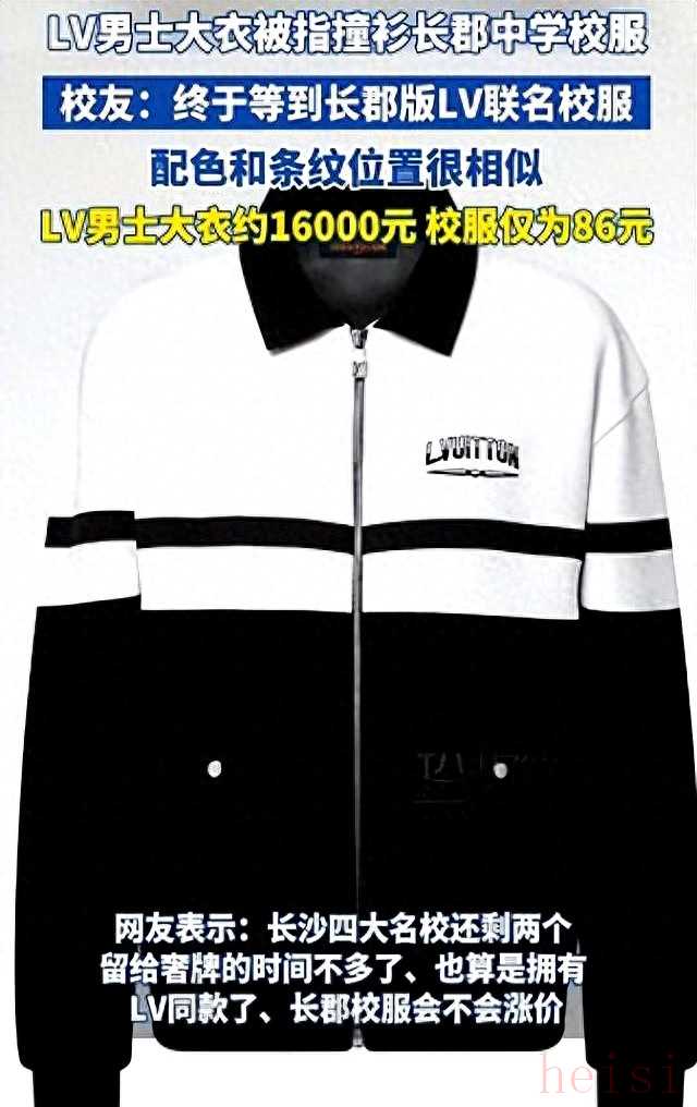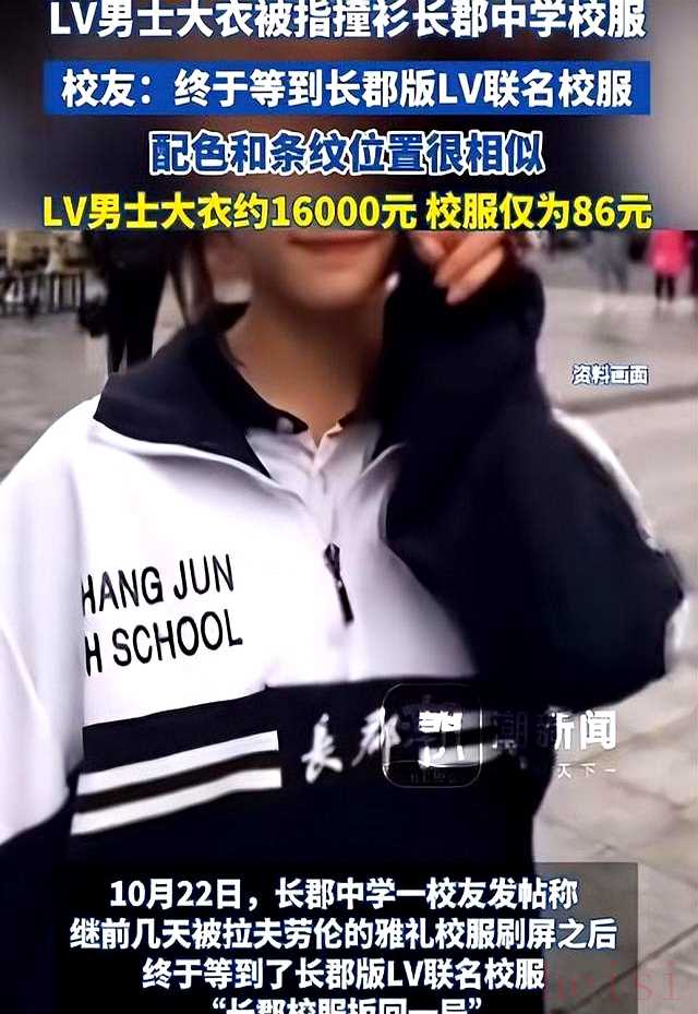 1.  "视觉相似性":从新闻报道来看,这款LV大衣和长沙长郡中学的校服(具体是哪个科目的校服,报道中可能未明确,但通常指夏季校服)在配色(如蓝白或黑白搭配)和条纹设计上确实存在较高的相似度。对于不仔细看或者远观的人来说,可能会产生“撞衫”的感觉。