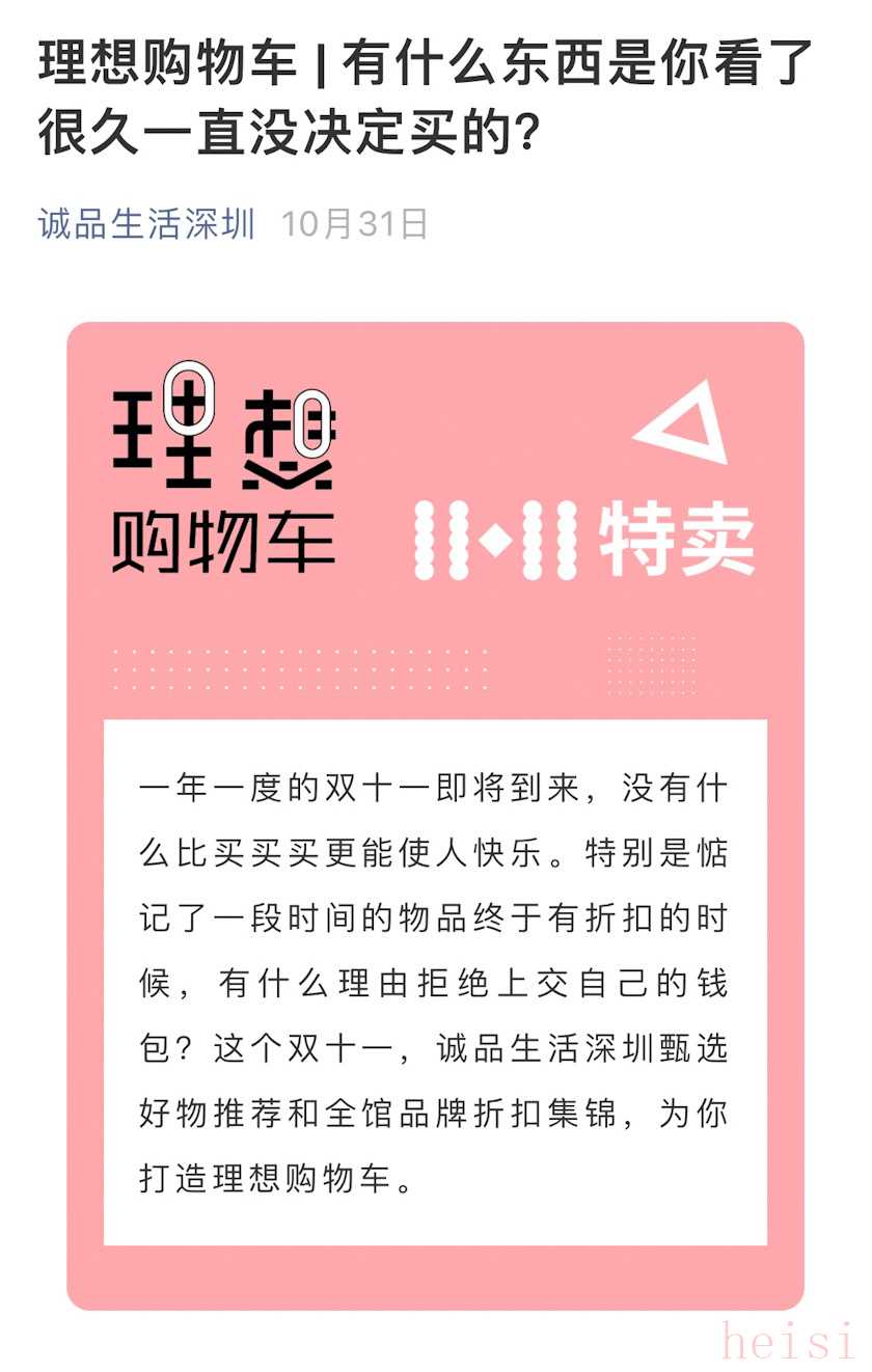 但深圳诚品推送的内容更多是“一年一度的双十一即将到来,没有什么比买买买更能使人快乐”。