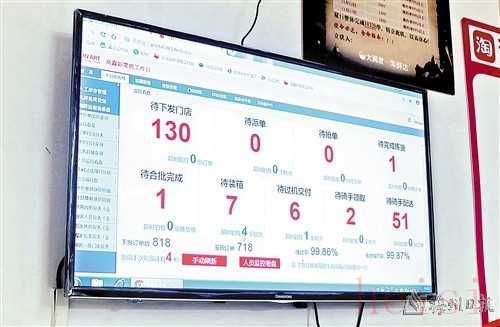 在梅州大润发公司客服经理廖周泉的带领下,记者来到了快拣室体验线上销售。接到订单后,超市员工手中的PDA扫描枪不断响起“任务铃”,由于需要在25分钟内完成分拣、合批、与骑手交接货物等一系列流程,大家都加快了手中的速度。在室内的大屏幕监控看盘上,清晰明了地标注了待下发门店、待装箱、待骑手领取的订单批次,其间还不时提醒剩余的拣货时间。