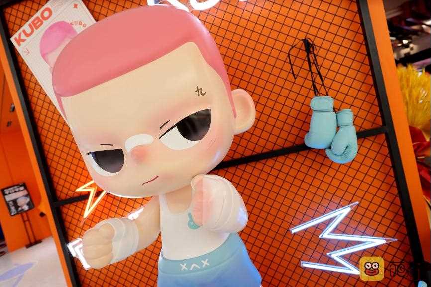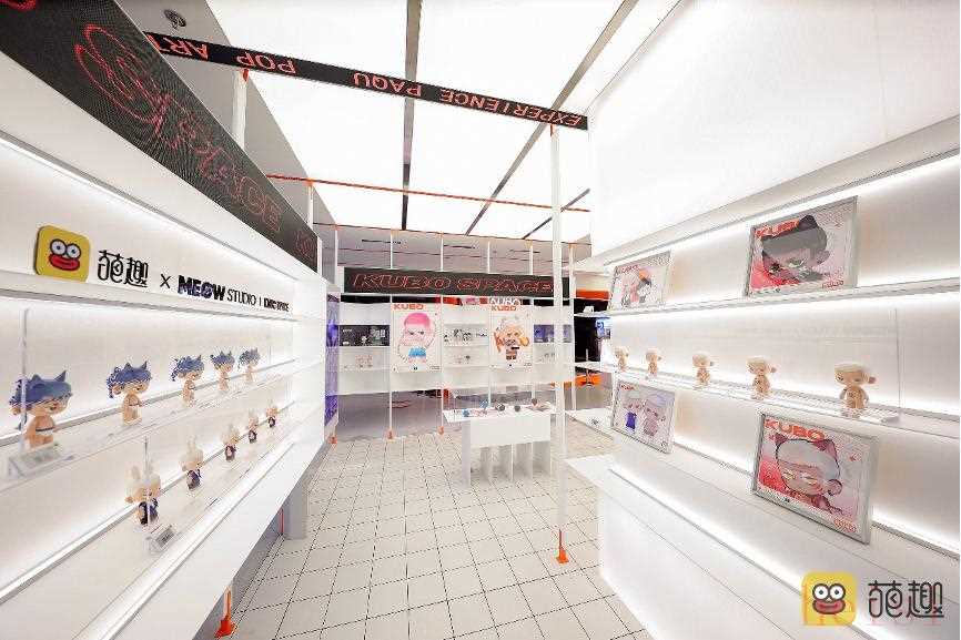 和一般的线下潮玩店不同,葩趣旗舰店内除了产品售卖,还专门设置了潮流文化体验区域。潮玩产品的售卖区域陈列着大量新锐艺术家的作品,其中被誉为2021年潮玩最大黑马的KUBO尤为亮眼。