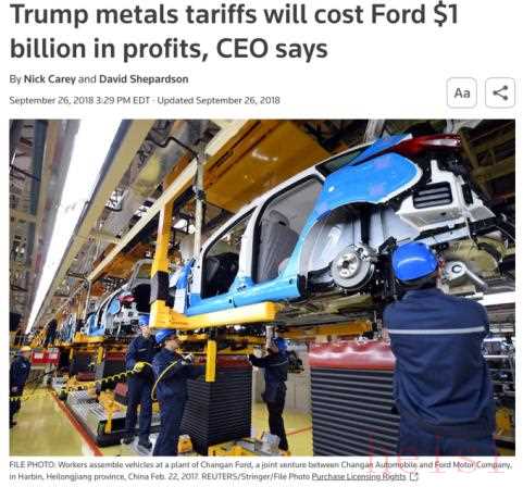 △早在特朗普上一任期内,福特公司就对特朗普政府的关税政策多次表达不满,表示公司利润将因此损失10亿美金。