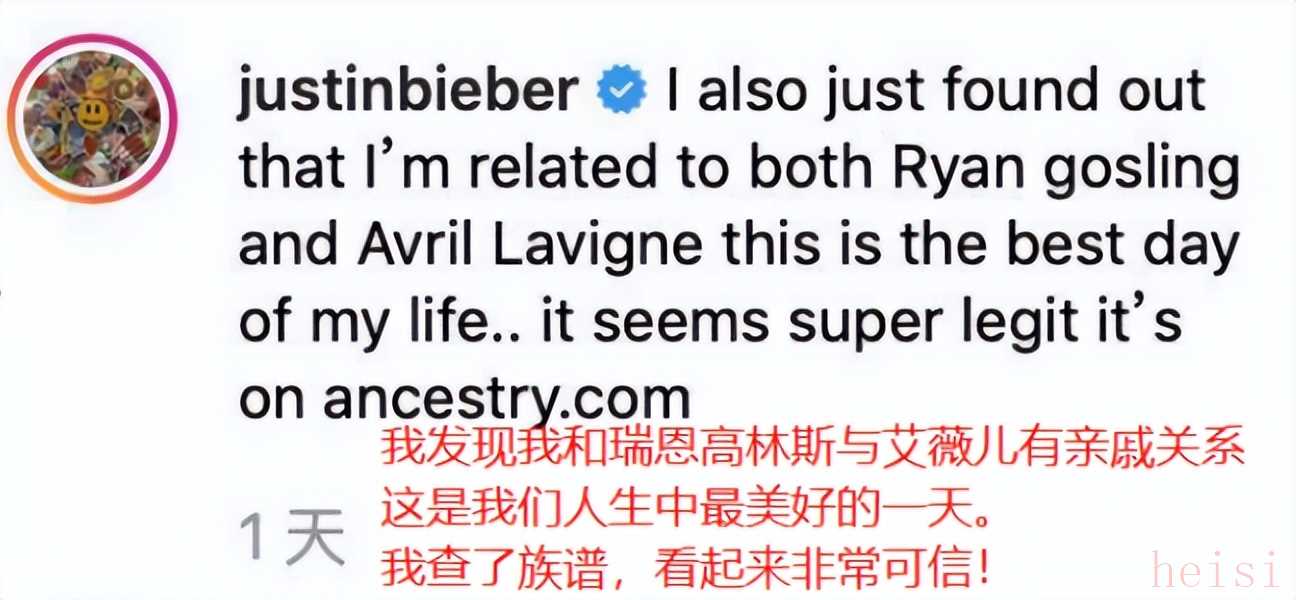 比伯甚至晒出了自己的族谱,表示这简直太美好了。