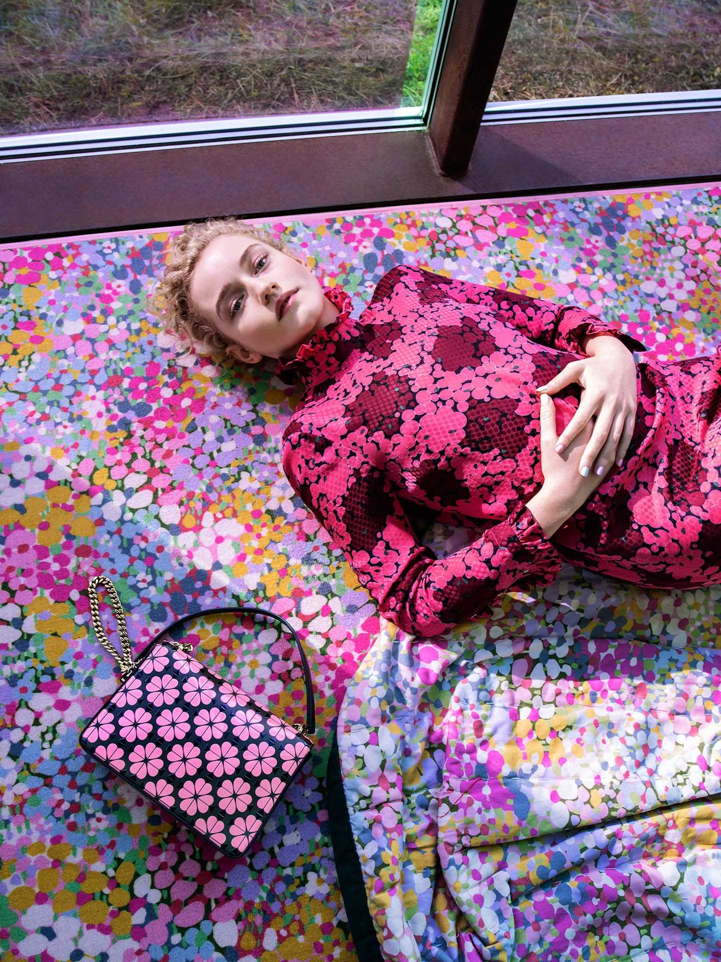 最新的2020春夏系列和2020早秋系列中,虽然Kate Spade印花还是那么多,细节处的少女气息还是那么浓,但这些衣服和包包不再是少女才能驾驭的单品。除了明黄色、粉色、紫色等Kate Spade的标志性颜色,各种不同的绿色开始大面积出现,甚至还有一些Kate Spade以前较少使用的黑色。