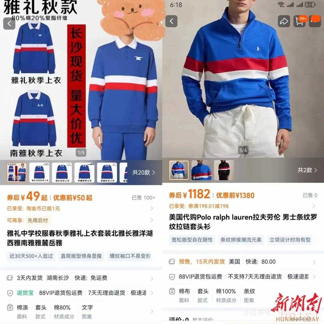 “不是拉夫劳伦买不起,而是雅礼校服更有性价比!”近日,有IP显示为美国的网友在社交平台晒出在知名品牌拉夫劳伦门店拍到的照片——照片中,一款长袖POLO衫与长沙市雅礼中学秋季校服在配色和设计上极其相似,引发网友热议。