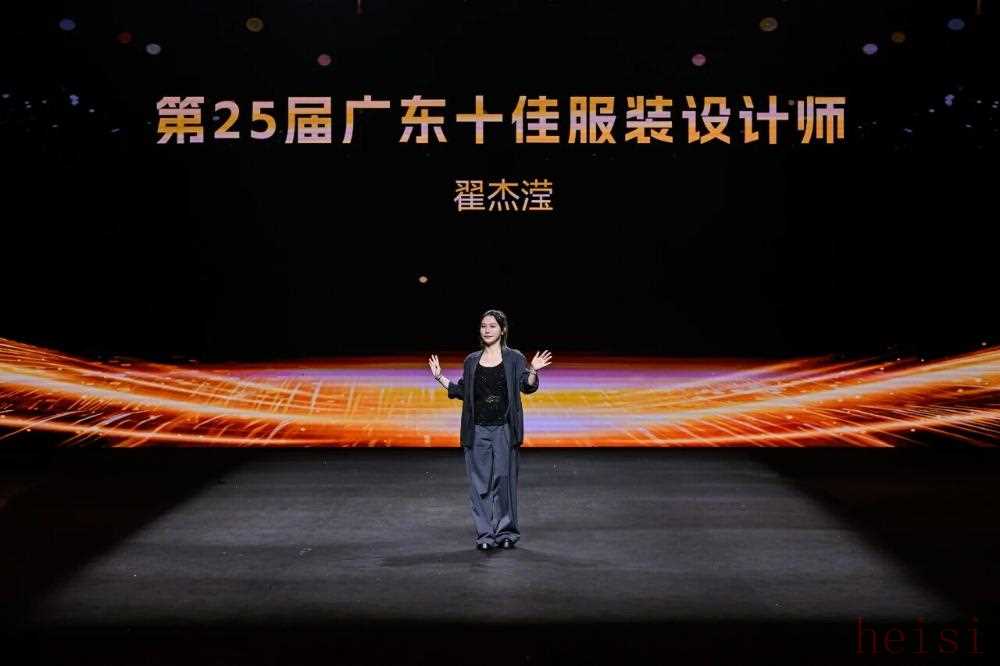 3. "亮点人物:" 广东十佳服装设计师翟杰滢 (Zhai Jieying, Ten Best Fashion Designers in Guangdong) - 突出了设计师的领衔作用和权威性。