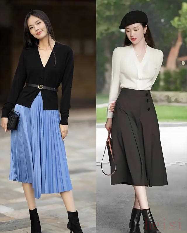”关键在“露后跟”——裙子盖到小腿肚,鞋跟却空着,像给脚踝打高光,整套造型立刻“呼吸”起来。