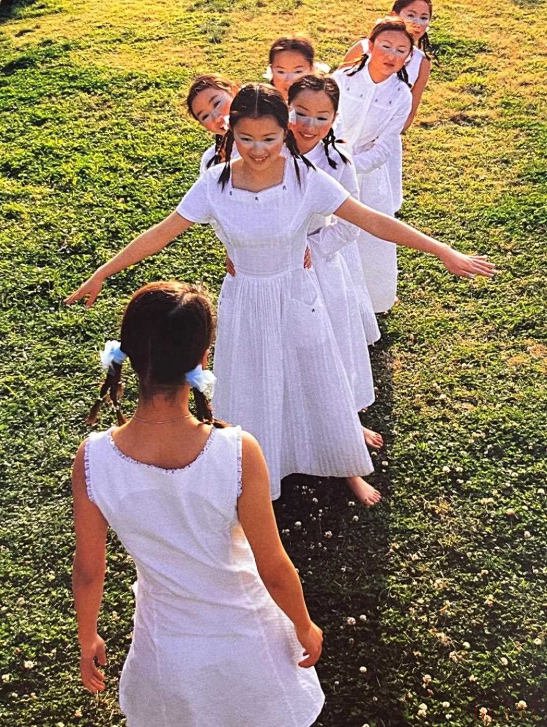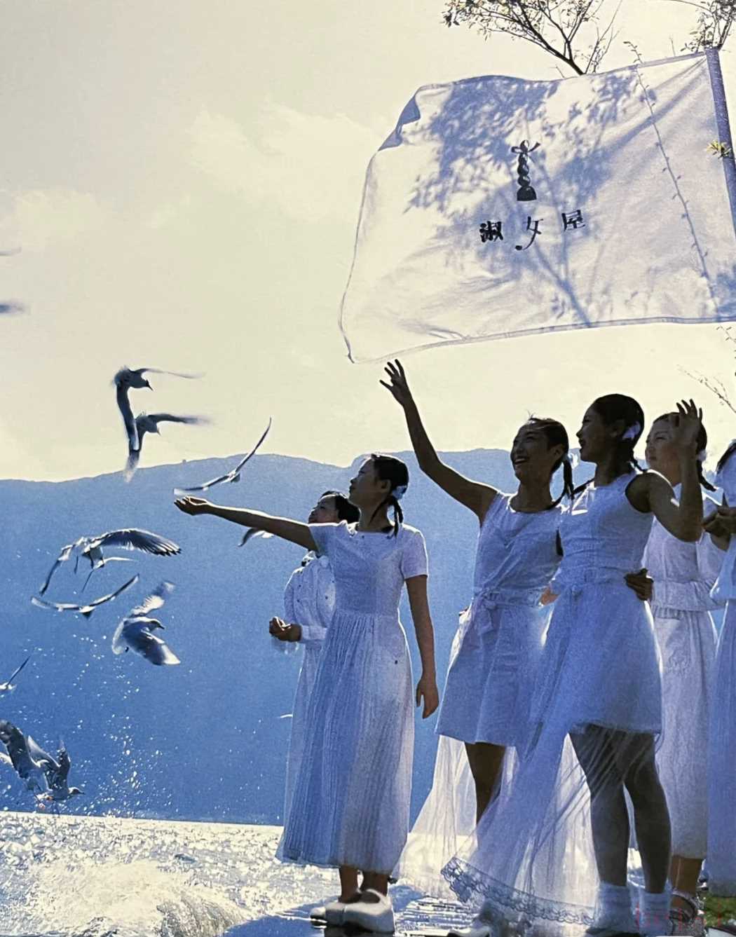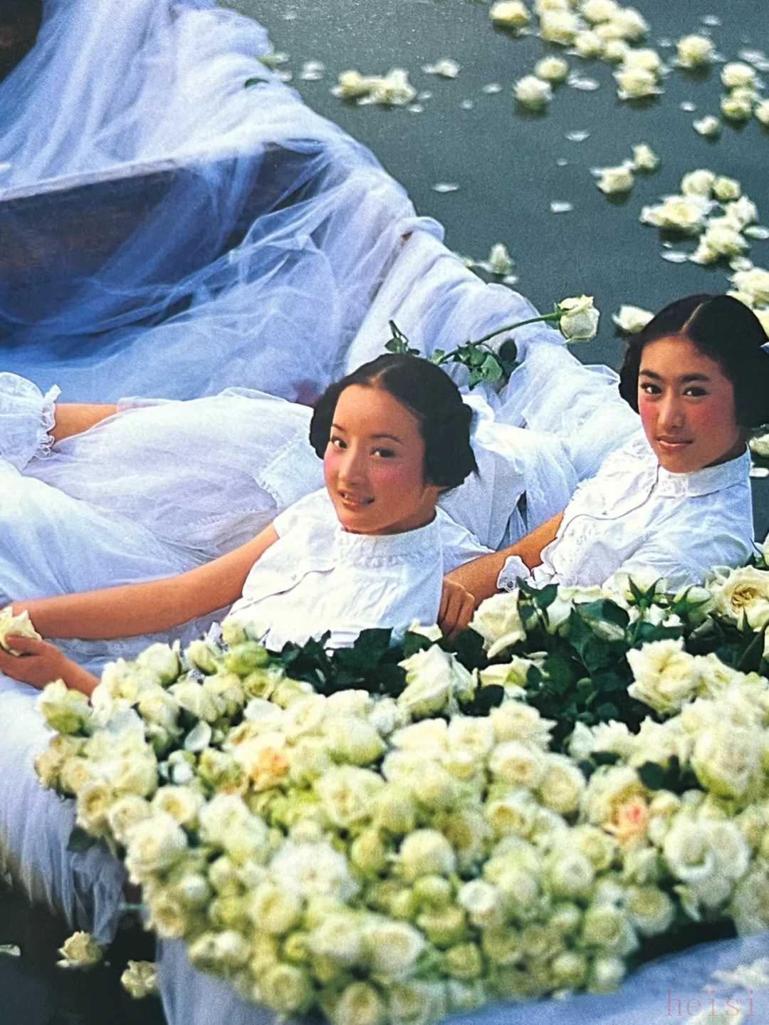 比如2000年的“天鹅湖”系列,她们在一片湖泊上取景,浪漫的元素铺满了整个船身,一群穿白裙的少女划着船戏水,纯净如油画一般。