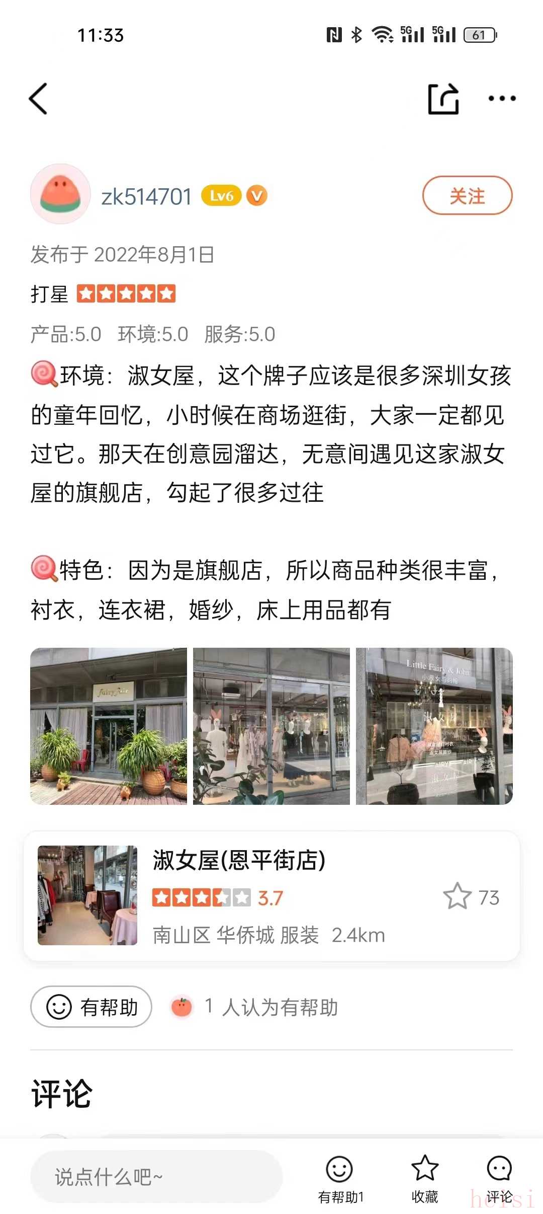 在一些平台的店铺点评中还能看到最后一家深圳淑女屋门店,门店中的服饰大多为粉色两色系为主的甜美少女风格。