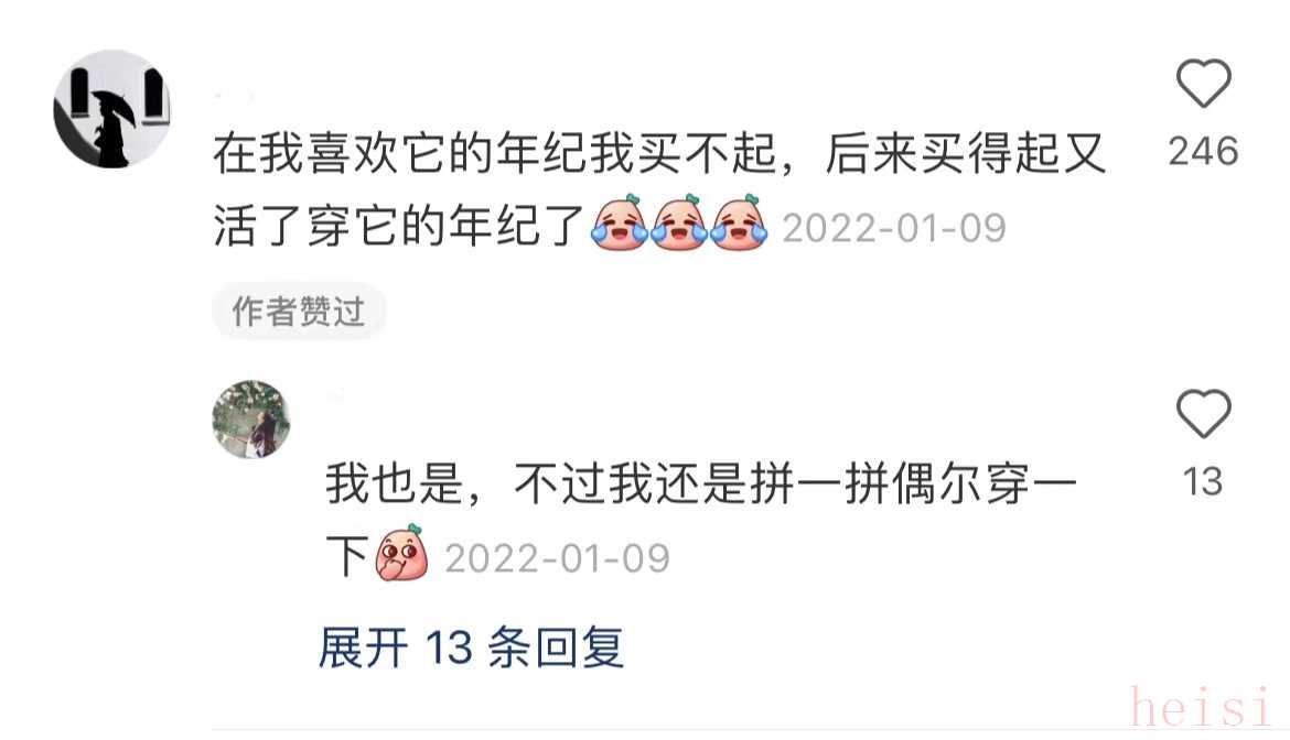 “在我喜欢它的年纪我买不起,后来买得起又过了穿它的年纪。”