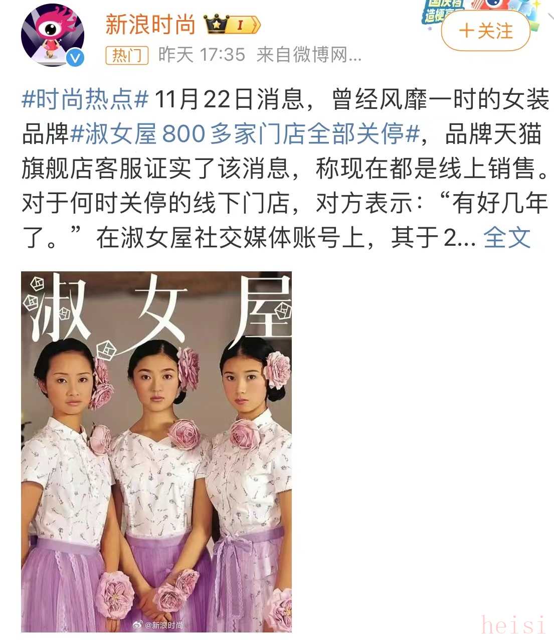 近日,曾经全国门店数超800家的女装品牌 “淑女屋”被传已无线下门店,一度冲上热搜。