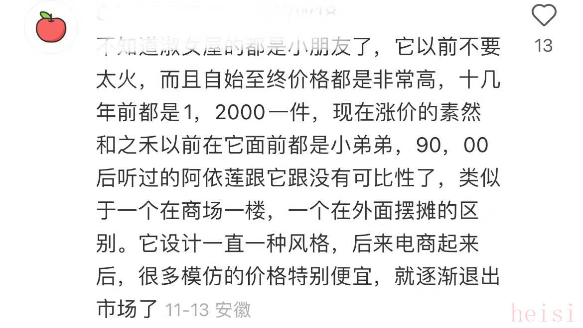 也有网友表示,淑女屋从十几年前开始价格就非常高,随着电商的兴盛,越来越多类似的服装品牌兴起,现在淑女屋已经没有什么市场优势了。