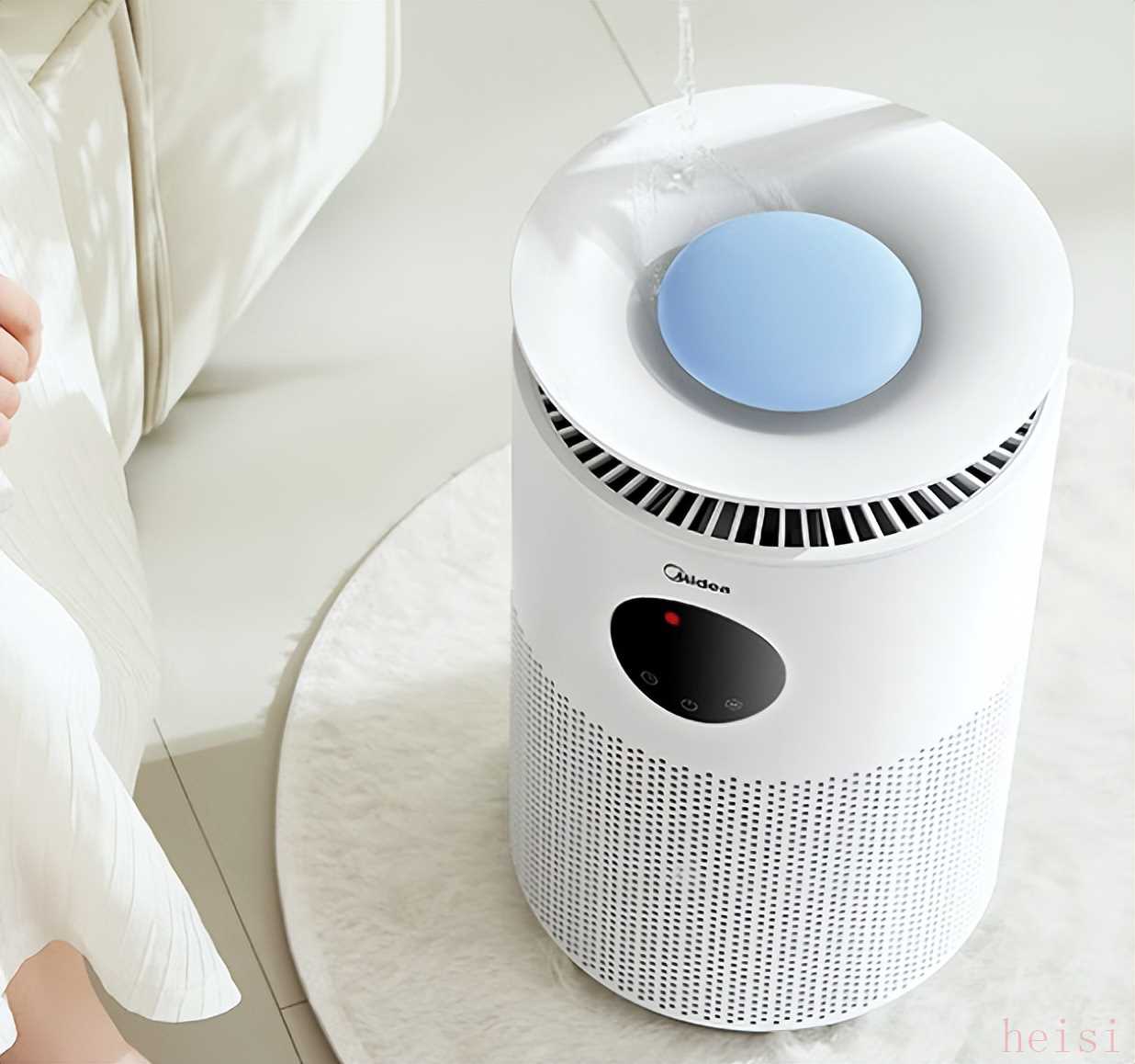 2.5L 水箱适配10-15㎡的小空间,加满水可连续使用 8 小时左右。机身设计简约小巧,白色外观适配各种桌面风格,顶部触控面板操作直观,老人也能轻松上手。