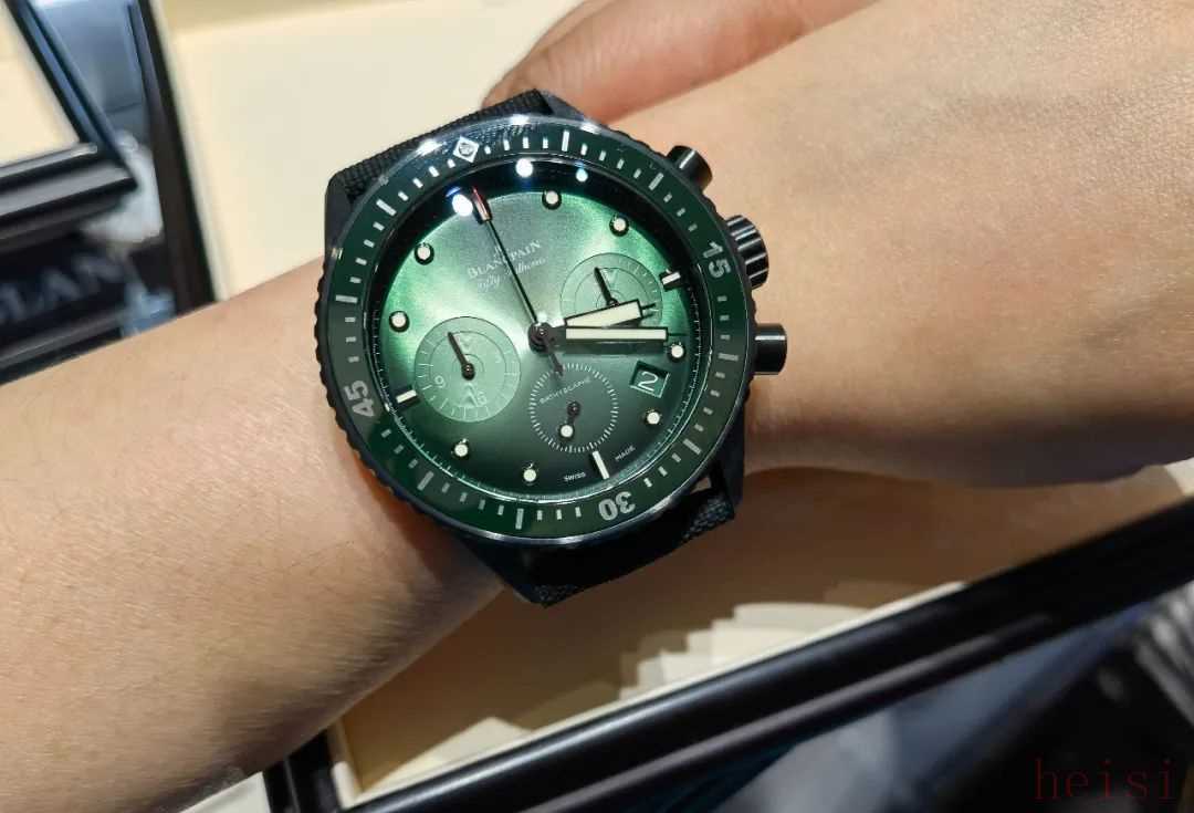 资深表友都懂“宝珀归来不看绿”。这枚宝珀五十噚系列“极光绿”深潜器飞返计时码表,绿表盘就相当炫酷炸街↓