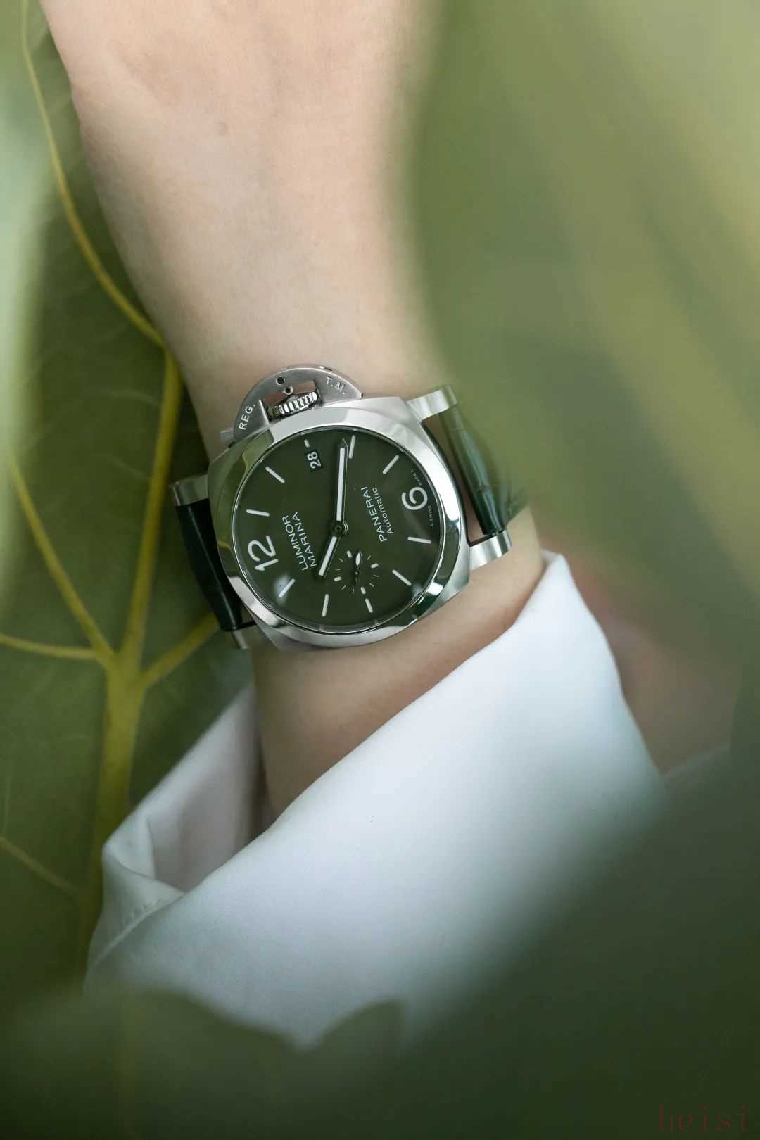 今年夏天,沛纳海的这款全新Luminor Quaranta Verde Militare庐米诺系列腕表,全球限量500枚,一抹“海神绿”分分钟吸引了范主的注意。