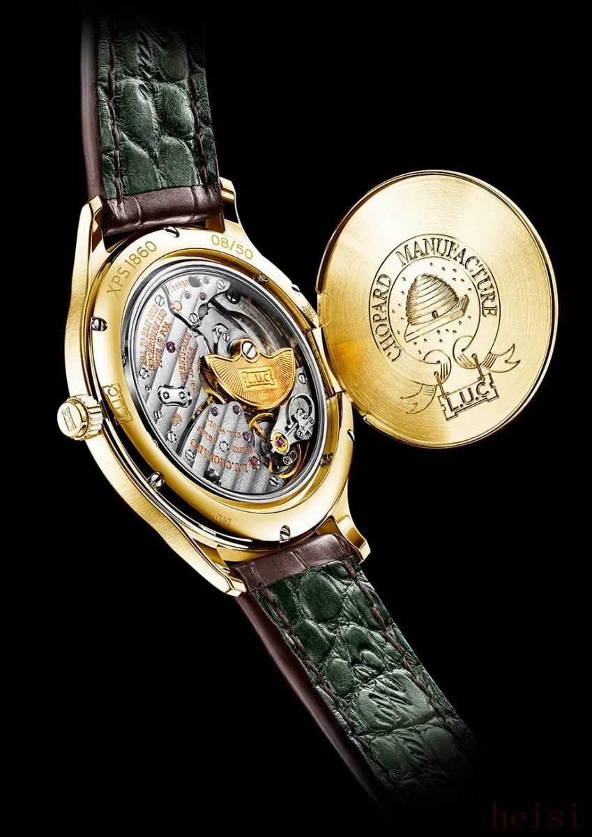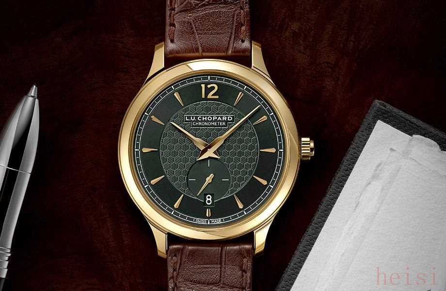 萧邦这一枚L.U.C XPS 1860 Officer超薄腕表,也绿得很不一样。表盘底部以18K金打造,盘面呈现出磨砂感的深邃墨绿色,中央还装饰了手工机镂蜂窝型图案,画风复古又精致。