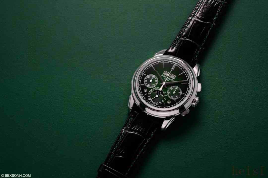 在今年的W&W上,百达翡丽推出了多款绿色腕表。这枚5270P-014万年历计时铂金腕表,就让人感觉十分惊艳。5270此次以铂金材质表壳搭配亮眼的绿色漆面表盘,贵气而独特。