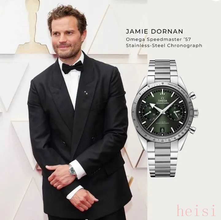 戴欧米茄绿盘的名人也不少,英国演员杰米·多南之前上手了他家新款的超霸系列腕表的绿色盘面款,很硬朗男人味~