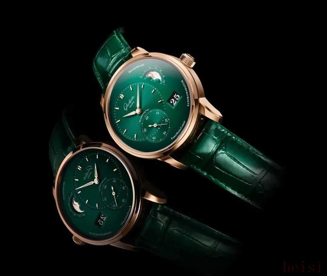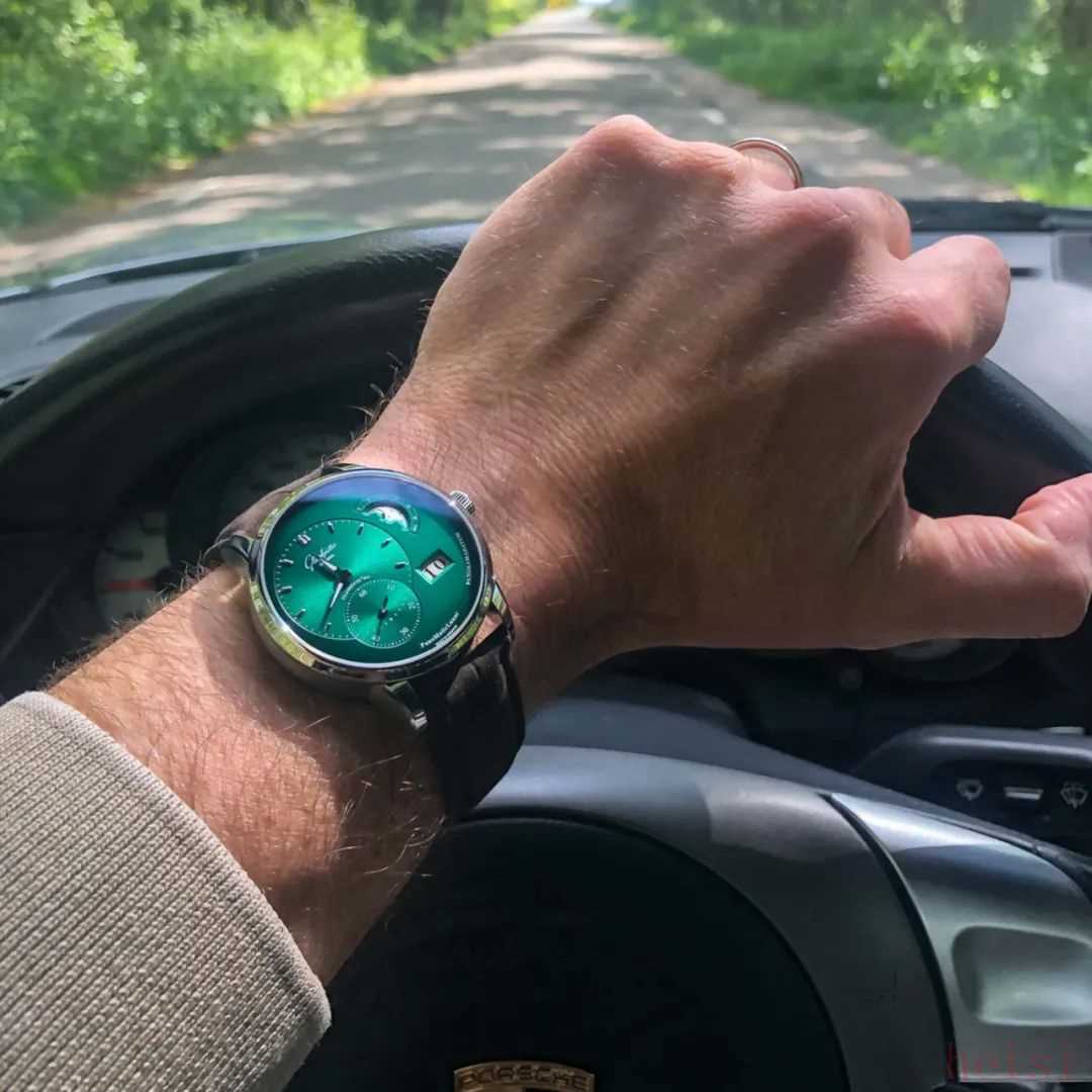 说到格拉苏蒂原创,他家的PanoMaticLunar偏心月相腕表也是一绝,偏心设计让懂表的人一眼就能识别,通透的深绿色自带一股贵气~