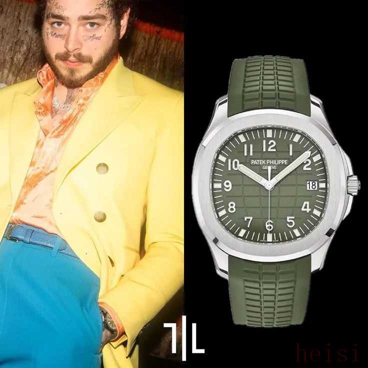 后来百达翡丽又“复刻”了这一款腕表,型号起名为5168G-010,这两年可以说超级受欢迎,表盘表带都是卡其绿色,既运动又高级。知名歌手Post Malone就戴过~