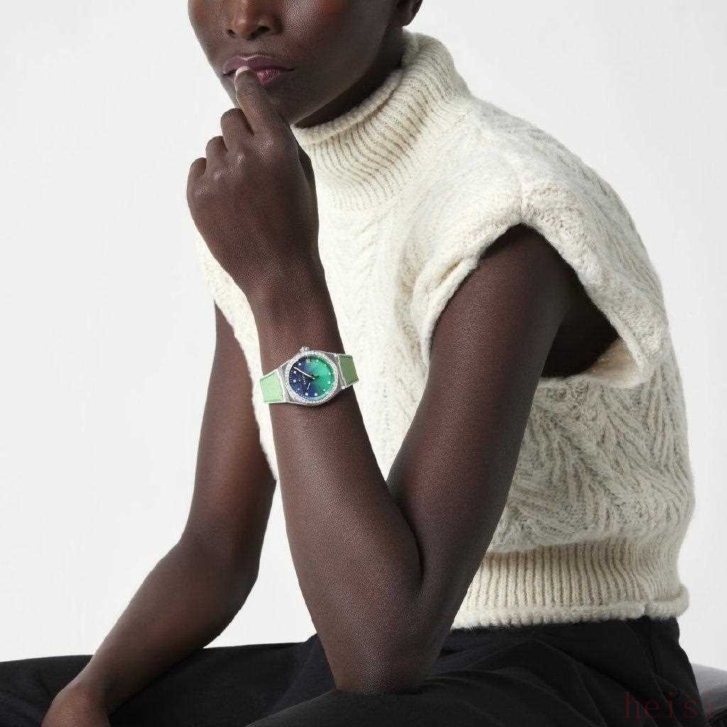 陶瓷材质的表壳和这种独特的绿色结合,呈现出的磨砂感高级又时髦,搭配上同色系织物表带,日常搭配也绝对出彩。