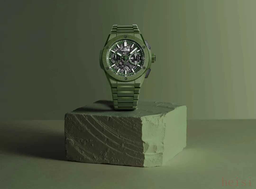 这两年更是有各种类型的绿色腕表层出不穷,像一贯酷炫酷炫风的宇舶,也推出了不少绿色腕表,与科技材质搭配,更显不一样的时髦味道~