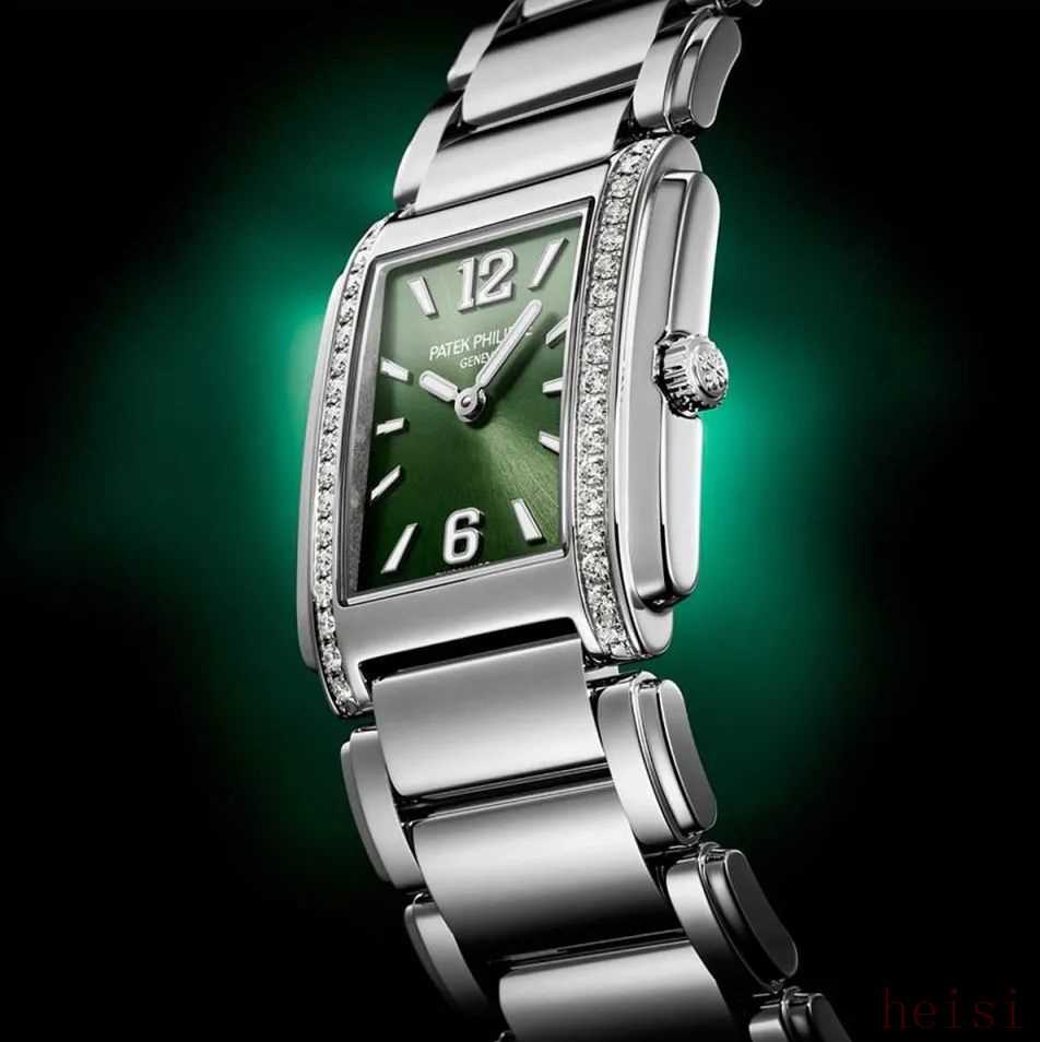 女生们入手绿盘表,可以看看这枚全新的twenty~4 4910/1200A,方形表壳精致小巧,草绿色盘面经典大气,搭配两排闪耀钻石,出手即优雅。
