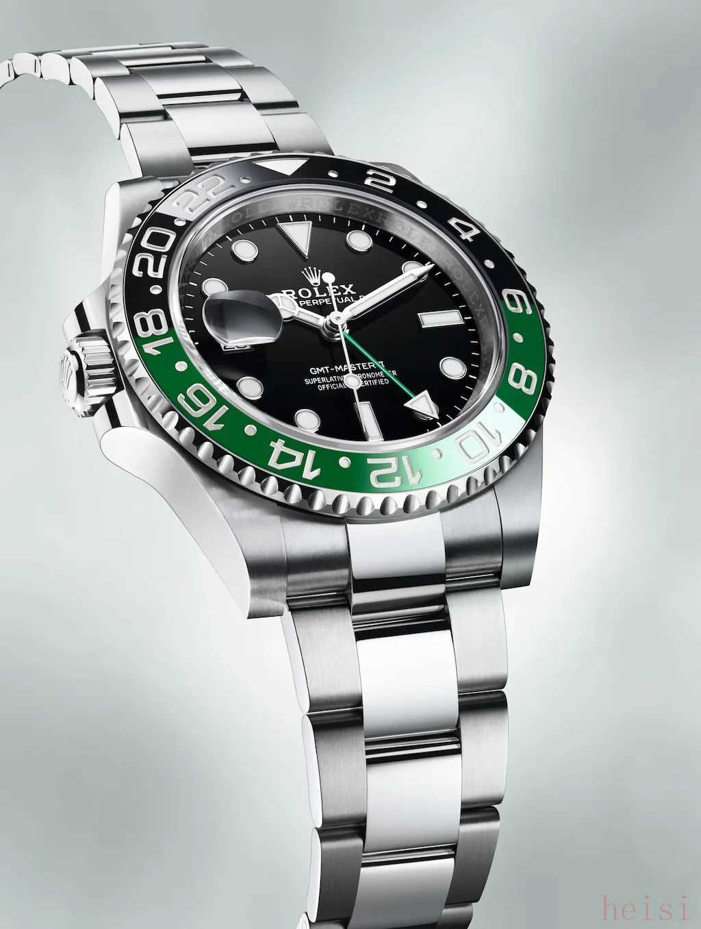 这枚新款GMT早已在社交网络上掀起不小的讨论,绿黑双色的陶瓷圈,集合了多种爆款元素,这一新配色被称为“雪碧圈”,确实让人眼前一亮~