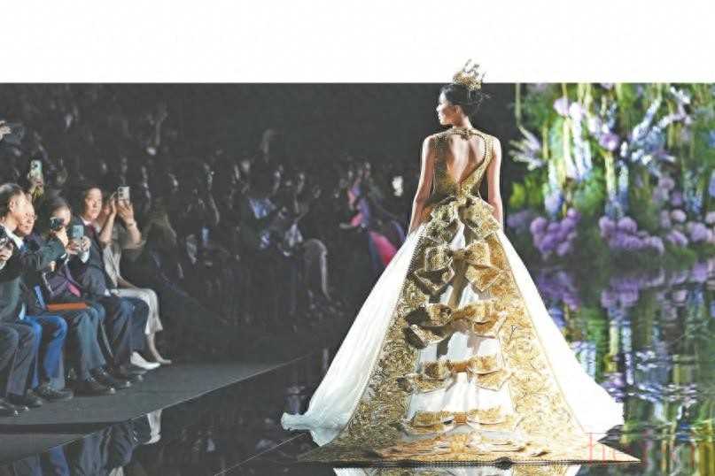 昨晚,国际知名高定设计师郭培以“鎏光”为主题,带来一场高定大秀。 本报记者 和冠欣摄