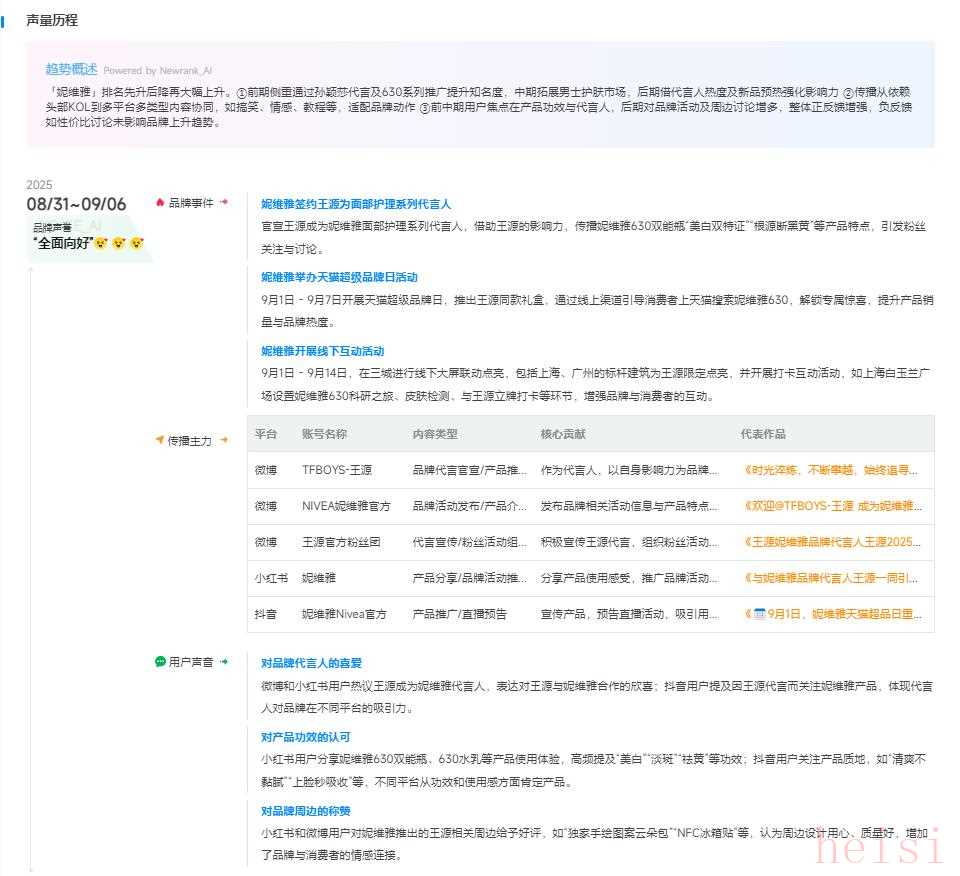 总而言之,妮维雅签约王源作为代言人是一次非常成功的品牌营销案例,有效地利用了明星的影响力,显著提升了品牌声量和市场表现。