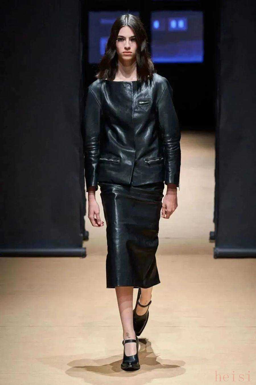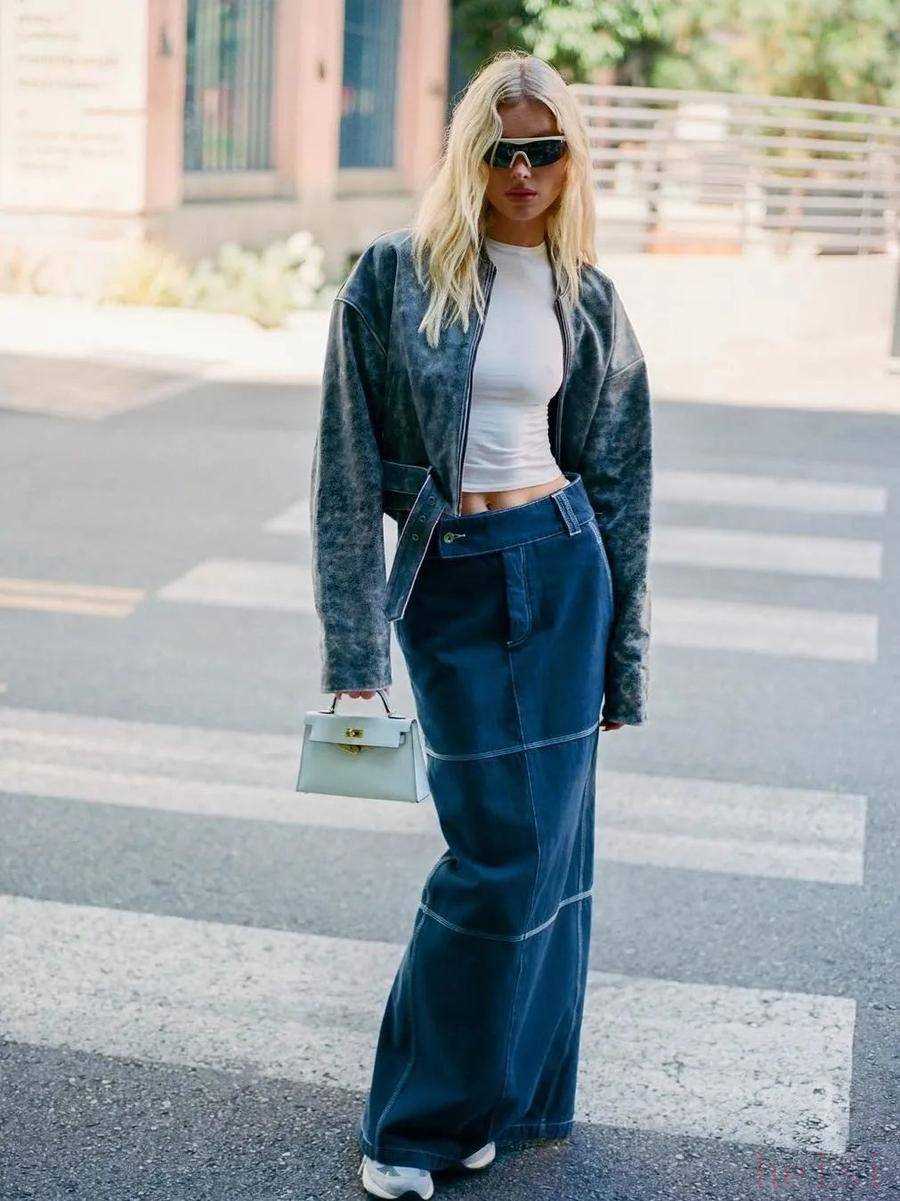 除了和夹克风格统一的裤装,皮夹克还很适合搭配今年很流行的全长半裙,裹身感的裙装和机车风格的夹克会冲撞出意想不到的效果。