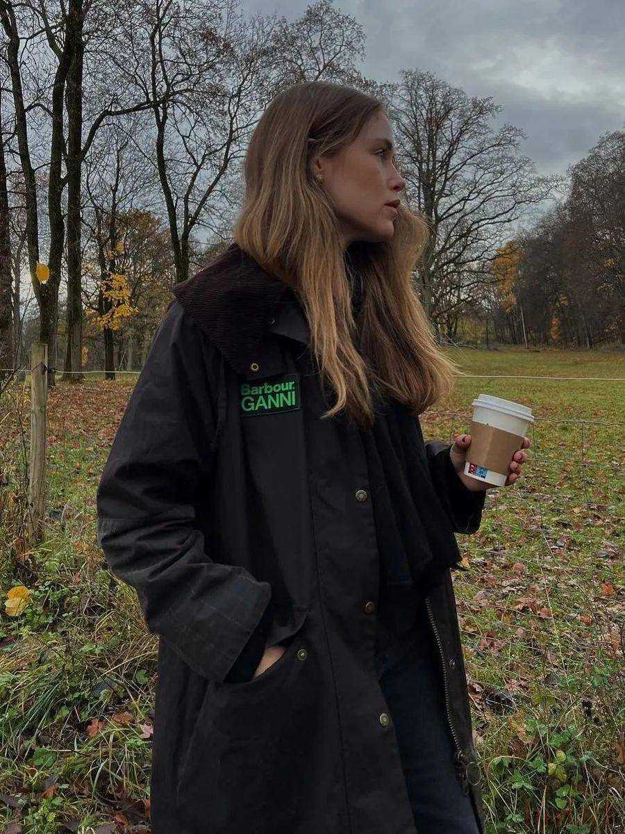 Barbour的火热程度从这几年它和各种时尚品牌的联名就可以看出。今年和GANNI的联名就用回收的Barbour夹克进行了可爱的remake,不仅符合两个品牌的环保理念还让油蜡夹克更有年轻感。