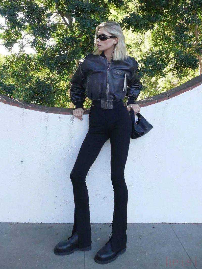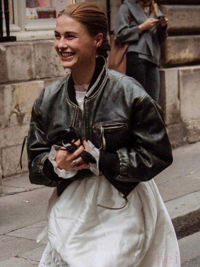 oversized款式比较适合身材高挑的女生,就完全可以照抄Hailey的穿搭方式。Hailey日常街拍中超高的皮夹克比例,让一件夹克也可以延伸出多种穿搭。马上要来的春天用夹克放肆露腿,这样的「下半身失踪」是今年辣妹的最佳打开方式。