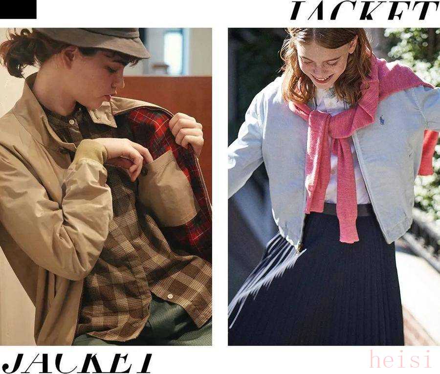 这种基础款单品也很好搭配,日杂的演绎就把老干部夹克的复古感放大,与学院风单品搭配,产生强烈的青春气息。