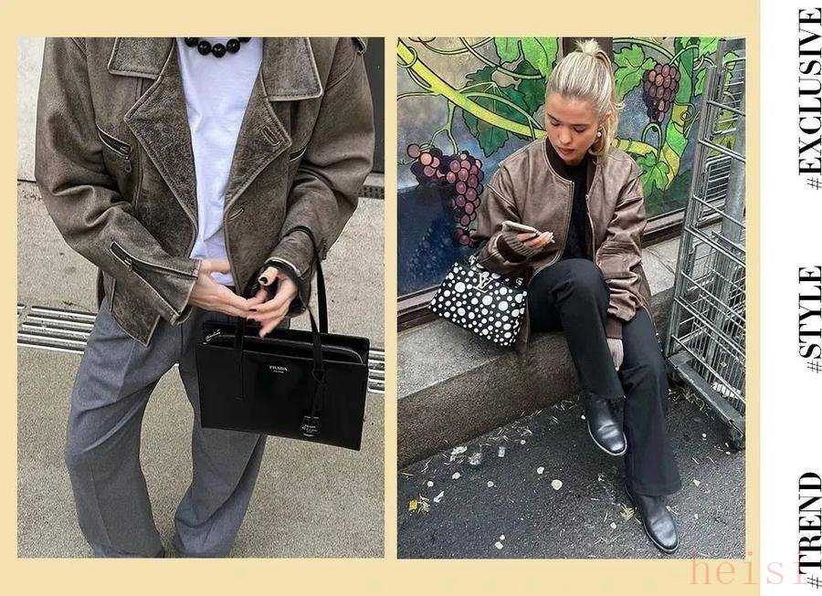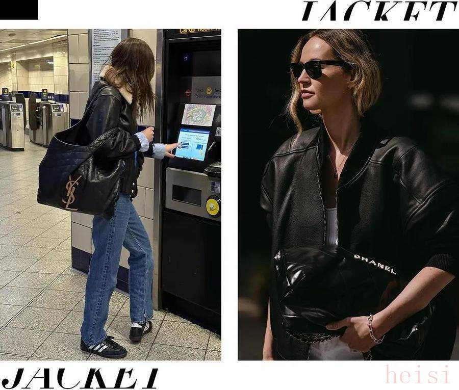 在日常休闲搭配中,我们更希望用皮夹克打造出松弛感,大包让这份时髦拿捏得更加自如。